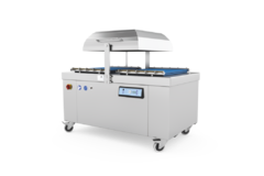As máquinas de dupla câmara da MULTIVAC trabalham com dois estágios. Enquanto na primeira câmara se realiza o embalamento, a segunda câmara é responsável pelo descarregamento e pelo novo carregamento. Assim, o processo de embalamento torna-se especialmente eficiente. Diferenciam-se dos modelos da série C devido aos opcionais limitados e de um comando simplificado. As máquinas com dupla câmara da MULTIVAC são fáceis de operar, limpar e conservar e podem ser equipadas com bombas de diferentes capacidades de acordo com necessidades específicas.